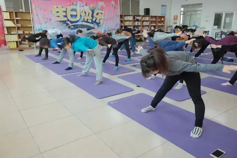 公司为了增进女职工之间的交流,加强团队凝聚力,促进团队和谐发展,缓解紧张的工作气氛,为广大女职工安排了舒缓身心的瑜伽课程。